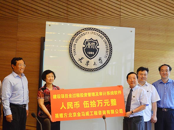 2014年5月21日我司向天津大學(xué)捐贈“建設(shè)項目全過程審計系統(tǒng)”軟件,并向該校北洋教育發(fā)展基金會捐贈一百萬元基本建設(shè)基金,大力支持該校教學(xué)工作。