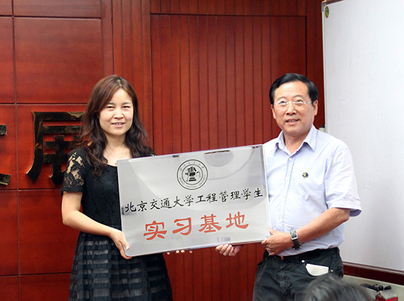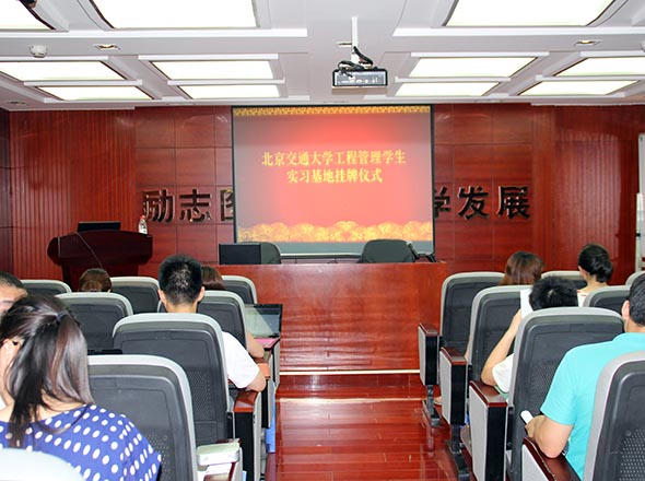 2014年5月29日下午兩點,在公司舉行了北京交通大學工程管理學生實習基地掛牌儀式,公司董事長周和生先生以及北京交通大學工程管理學院郭教授出席了此次儀式并發表了講話,并由公司總經理李飛對學生們進行講解和演示“全過程投資管理及審計系統平臺”操作介紹,得到了學生們的一致認可。