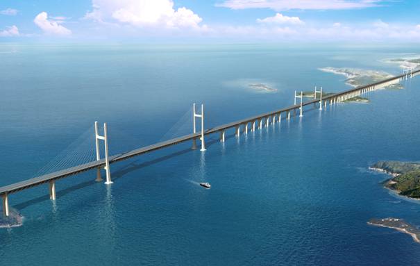 平潭海峽公鐵兩用大橋是我國(guó)第一座真正意義上的公鐵兩用跨海大橋,是新建福州至平潭鐵路、長(zhǎng)樂(lè)至平潭高速公路的關(guān)鍵性控制工程,是連接福州城區(qū)和平潭綜合實(shí)驗(yàn)區(qū)的快速通道。 大橋包括跨越元洪航道、鼓嶼門(mén)水道和大小練島水道的3座航道橋,以及引橋、鐵路路基三大部分,為鋼桁結(jié)合梁斜拉橋。